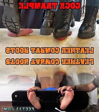 Crushing his Cock in Combat Footwear Black Leather - CBT Bootjob with TamyStarly - Kneeing Balls, Femdom