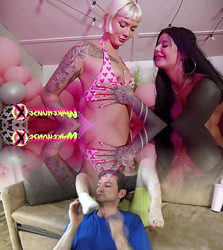 Gonzo Lesbian Time - Inked girl dominates her friends