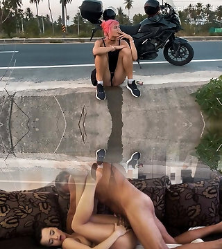 Motorbike girlfriend peeing on the roadside