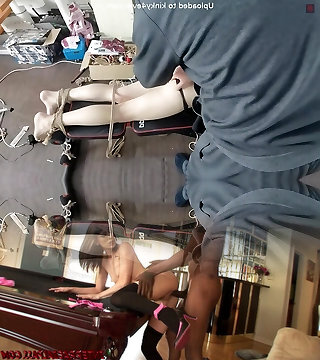 Incredible cowgirl in high heels getting tormented by being tied using rope in bdsm sex