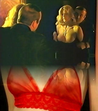 Laura is wearing a jaw-dropping white dress, pinkish pantyhose and platform high-heeled slippers, tied up and gagged in a bed