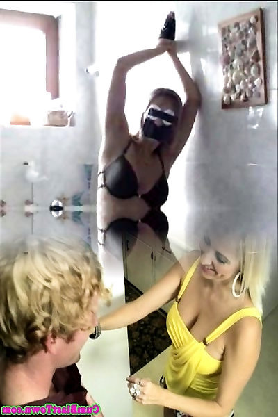 Stunning immobilized buxomy blonde MILF gets mouthfucked tough