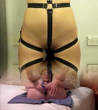 Cute big ass woman strapped up and teasing with vibrator until orgasm