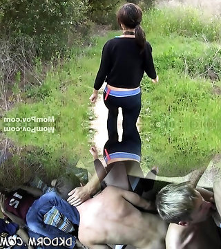 Horny milf brunette is mouth fucked rough in the woods