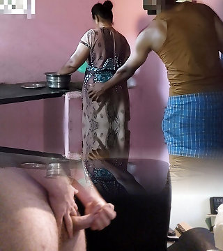 Aunty was working in the kitchen when I had orgy with her