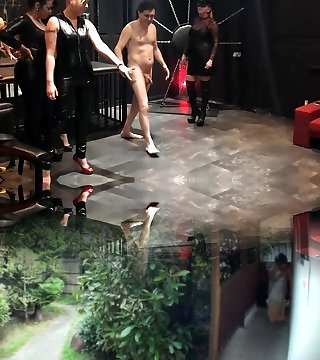 4 Mistresses (Arabella, Electra, Islya and Noir) kick Andrea Dipre in the nut sack