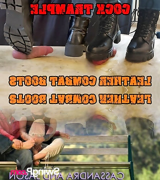 Crushing his Cock in Combat Footwear Black Leather - CBT Bootjob with TamyStarly - Kneeing Balls, Femdom