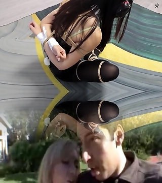Extreme deep blowjob with duct tape tied hands and legs and cum inside facehole with cute brunette