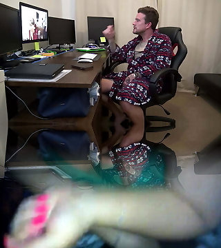 ओवरकनी बैले ऊँची एड़ी के जूते अधोवस्त्र और लेटेक्स दस्ताने में मालकिन गुलाम को अपने सह निगल जाने देती है!