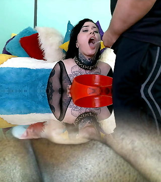 वास्तव में गर्म जाहिल के साथ हरे रंग के बाल दीप गला बड़ा लंड