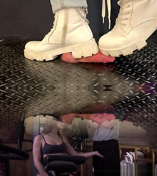 लंड कुचलना और पेट में काले टखने के जूते के साथ-बूटजॉब, मुर्गा और गेंद यातना, स्क्वरटिंग, महिलाओं का दबदबा, क्रश
