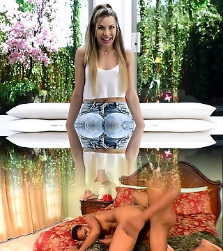 जब वह उसे नीचे खींचती है और प्रदर्शित करता है कि स्वादिष्ट गधा यह इतना अति सुंदर है