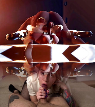 एक सींग का बना हुआ लाल बालों वाली लड़की के साथ सोट्री चूसना