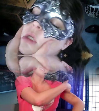 Dude puts the mask on hook-up-marionette before punishing her throat