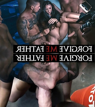 Forgive Me Father - rock chick with big tits pleasured by 3 big cocks in filthy raunchy hardcore foursome vignette