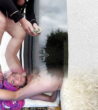 Milf cleaning window public in bdsm