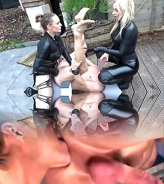Mistress Maggie Green & 2 GFs Whip & Pleasure Tattooed Marionette