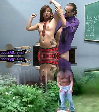 Richard Nailder smacks a tied Mystic Monroe's teen pussy before making her suck his boner