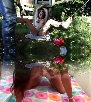 Curvy Tattooed Victim In Bondage Fucked With Dick On A Stick