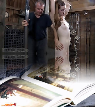 Richard Nailder smacks a tied Mystic Monroe's teen pussy before making her suck his boner