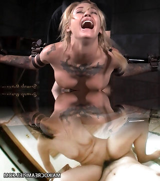 Tied up doll attempts to scream while uses a vibrator to torture her