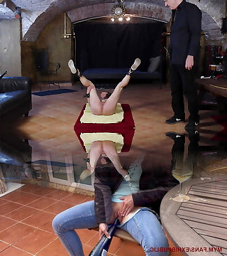 Squeezed Teenie Pussy Caned Cruelly