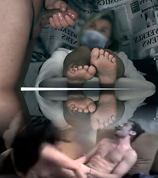 The impotent boy tried to fap off his limp dick on his girlfriend's soles, but could not – CFNM
