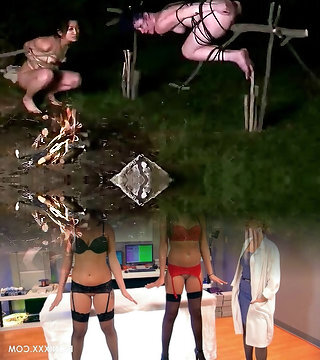 A hairless, bearded and hairy male is cruel to his killer mature wife for the amusement of people))