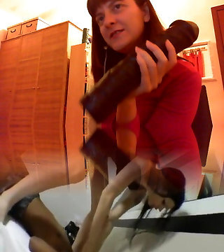 Lesbian Gimp Uses Big Oily Strapon To Pleasure Her Naughty Mistress