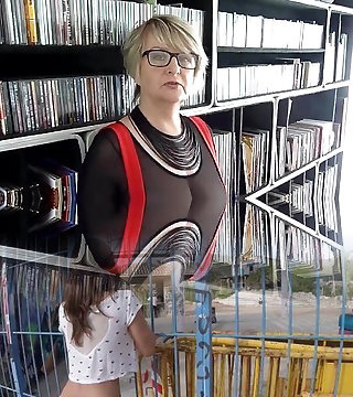 Fat domina with humungous boobs and glasses teasing with her feet