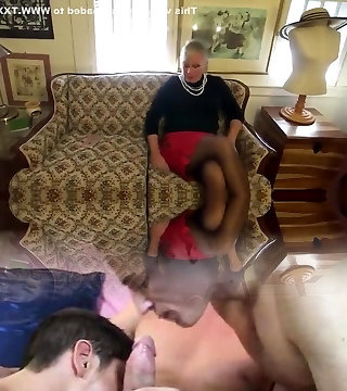 Step mother in tights gives the best handjob on crossed legs