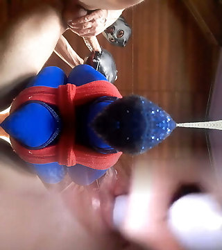 Simony Diamond tied in cut open pantyhose gobbled orgasm