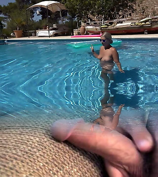 I get rock hard when I witness my mother-in-law semi naked in the pool pt2 we fuck, she rides my rod