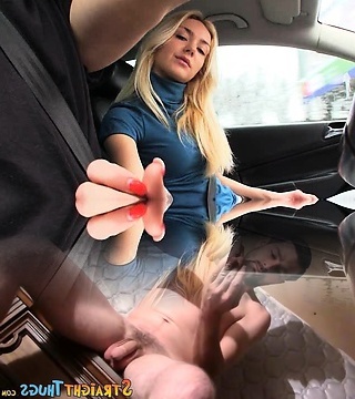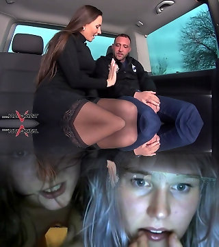 Real slut in black lingerie Mea is brutally fucked inwards the car
