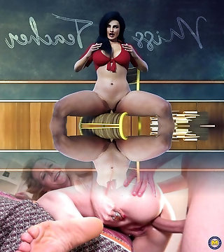Thick tit cheerleader gets ass ravaged by giant demonic finger